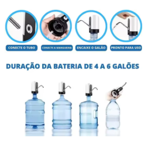 Não precisa mais virar e levantar galões pesados. Basta encaixar a bomba e apertar o botão.