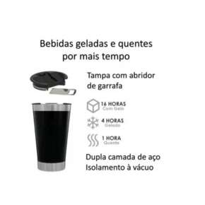 Com isolamento de parede dupla a vácuo, o copo mantém sua bebida quente ou gelada por até 4 horas e 30 minutos. Ideal para um café nas manhãs ou uma cerveja gelada à noite.