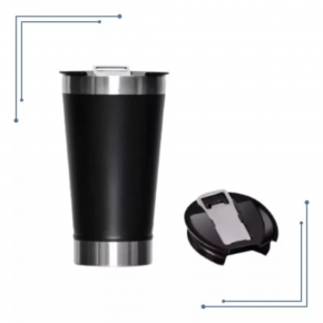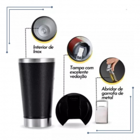 A tampa contra derramamento evita sujeira e permite transportar sua bebida com segurança, enquanto o abridor de garrafa integrado é perfeito para momentos de descontração.