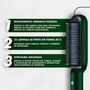 Diga adeus aos dias de cabelo desarrumado. Com nossa Escova Elétrica e Pente de Aquecimento, você conquista fios lisos e sedosos com facilidade direto do conforto da sua casa.