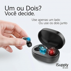 contém até 2 horas de reprodução contínua e recarrega facilmente na caixa compacta, ideal para levar em viagens ou no dia a dia.