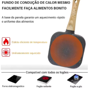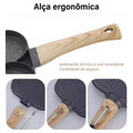 O revestimento antiaderente permite cozinhar com pouco ou nenhum óleo, garantindo pratos mais leves e nutritivos.