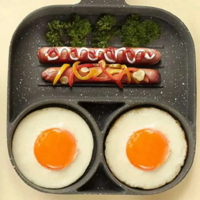 Frigideira antiaderente com 3 divisórias