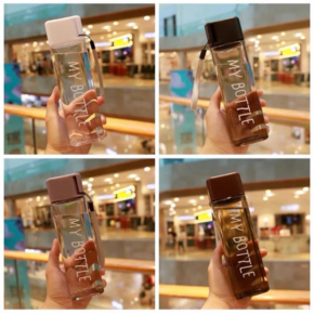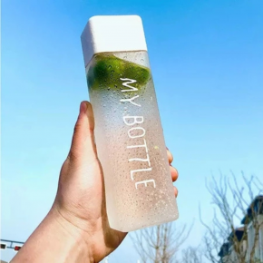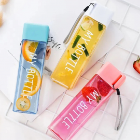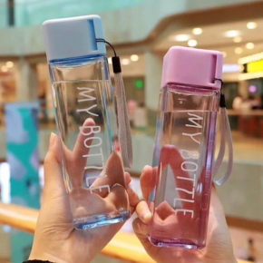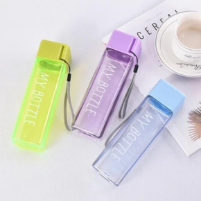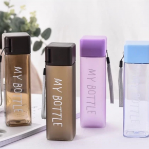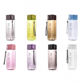 Garrafa de água quadrada squeeze 450ml com tampa e alça de plástico