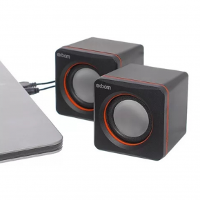 Leve e fácil de acomodar, as caixas de som são perfeitas para qualquer ambiente, sem ocupar muito espaço na sua mesa.