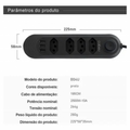 Tomada USB extensão elétrica de 110-220V, 10A, 2M, 2500W