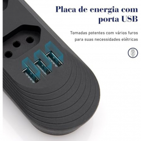 Perfeita para casa, escritório ou viagens, a tomada USB com extensão elétrica suporta uma ampla gama de dispositivos.